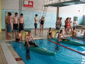 Bei der Piratenstaffel mussten die Schülerinnen und Schüler z.B. ein Kanu durch das Schwimmbad "schippern", im Hindernisparcours beim Überwinden von Geräten ein Lösungswort zusammen tragen und bei der Wasserschwammstaffel einen Eimer mit dem plötzlich so wertvollen Nass befüllen.