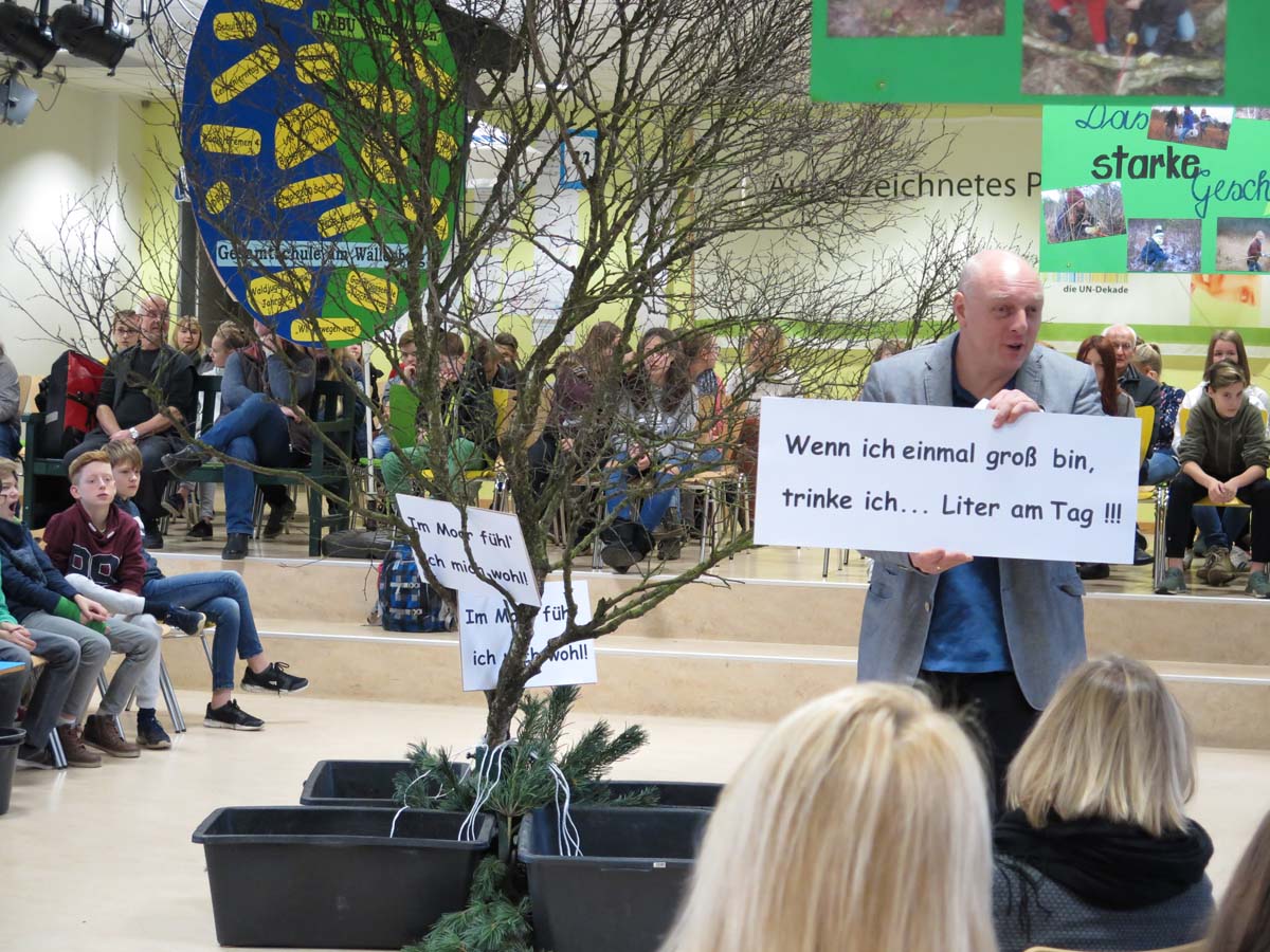In der Feierstunde skizzierte Herr Köhring zunächst ein düsteres Bild: Immer mehr Menschen, immer größerer Energieverbrauch, stark reduzierte reine Naturflächen, die den Kohlendioxid-Ausstoß kompensieren könnten. Dazu Staaten, die aus dem Pariser Klimaschutzabkommen aussteigen wollen.