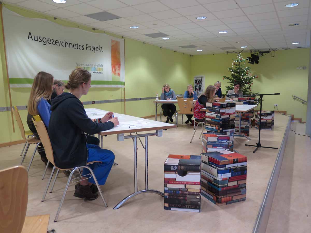 Einen Tag nach Nikolaus fand der traditionell in der Adventszeit liegende Vorlesewettbewerb des 6. Jahrgangs statt. Aus den fünf Klassen nahmen jeweils zwei SchülerInnen teil, stellten ihre Bücher vor und zogen durch ihren Vortrag die Zuhörenden in ihren Bann und in die Welt der Fantasie.
