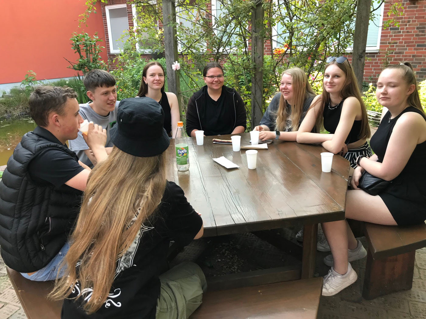 Über 85 Schüler*innen des Abschlussjahrgangs 2022 trafen sich am Donnerstag, dem 08.06.23, rund um den Schulteich zum diesjährigen Ehemaligentreffen. Bei Bratwurst und Erfrischungsgestränk tauschten sich die jungen Leute über Ausbildung und Schule aus und ließen so manche schöne Erinnerung an ihre KGS-Zeit wieder aufleben. Die wieder einmal sehr große Resonanz zeigt die enge Verbundenheit der Ehemaligen mit ihrer KGS.