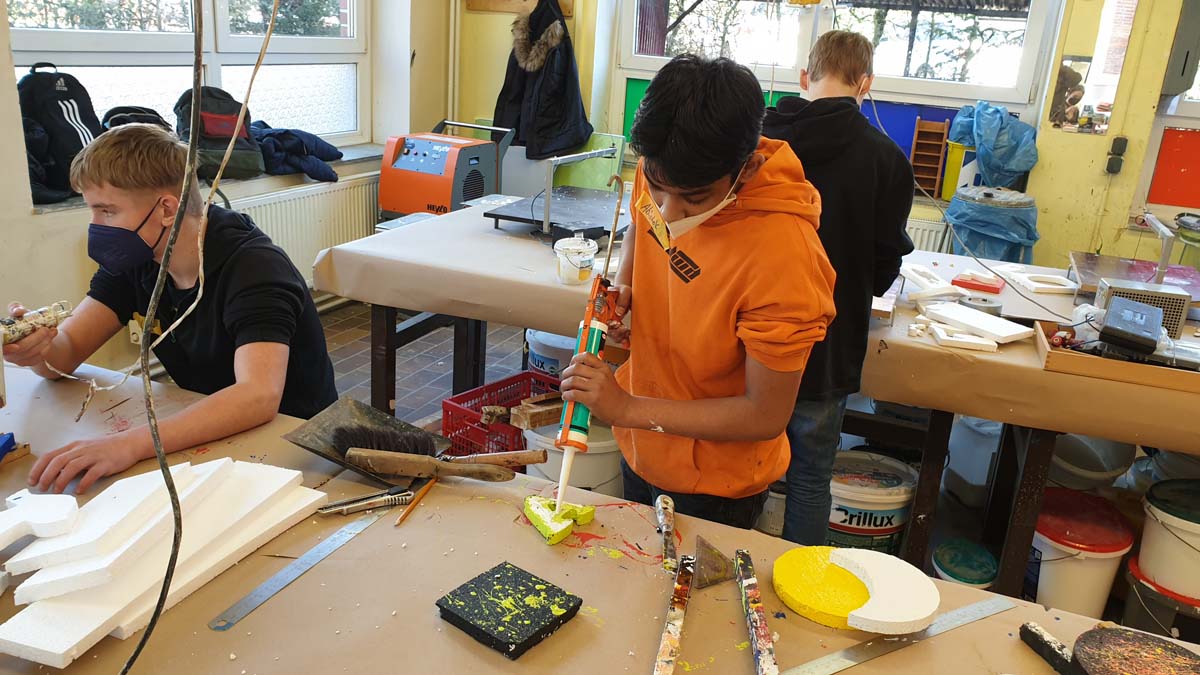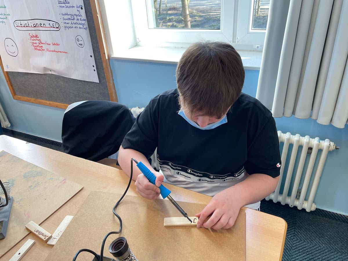 Die Förderschüler*innen absolvierten ihr erstes Berufspraktikum, um erste Einblicke in die Berufs- und Arbeitswelt zu erhalten. Die Haupt- und Realschüler*innen hatten die Möglichkeit, im Rahmen der Praxistage an den Berufsbildenden Schulen Osterholz-Scharmbeck täglich wechseln in den verschiedenen Werkstätten der BBS die unterschiedlichsten Berufsfelder kennenzulernen. Unter Anleitung erfahrener Fachpraxislehrkräfte gelang es allen Kindern, jeweils am Ende eines Praxistages ein fertiges Produkt fertiggestellt zu haben und mit nach Hause nehmen zu können. Dazu gehören z.B. eine KFZ-Prüfbox, ein Holztablett oder eine Metallfigur für den eigenen Garten. Und wer wollte nicht schon immer mal einen Kamin mauern oder einen Abfluss montieren? Auch wenn es sich zunächst um erste Einblicke in die Welt der v.a. handwerklichen Berufe handelt, hat in diesen Tagen schon so mancher Schüler/manche Schülerin den Traumberuf gefunden. Ohne die Einblicke in die praktischen Tätigkeiten wäre es vielleicht nie dazu gekommen. Vielen Dank an die Kolleg*innen der BBS für ihren großen Einsatz auch für unsere Schüler*innen.