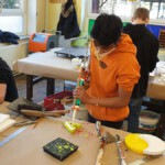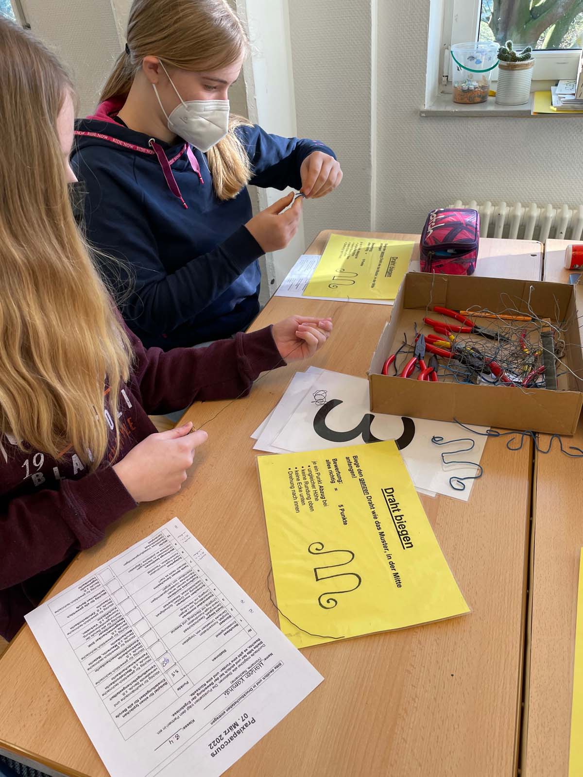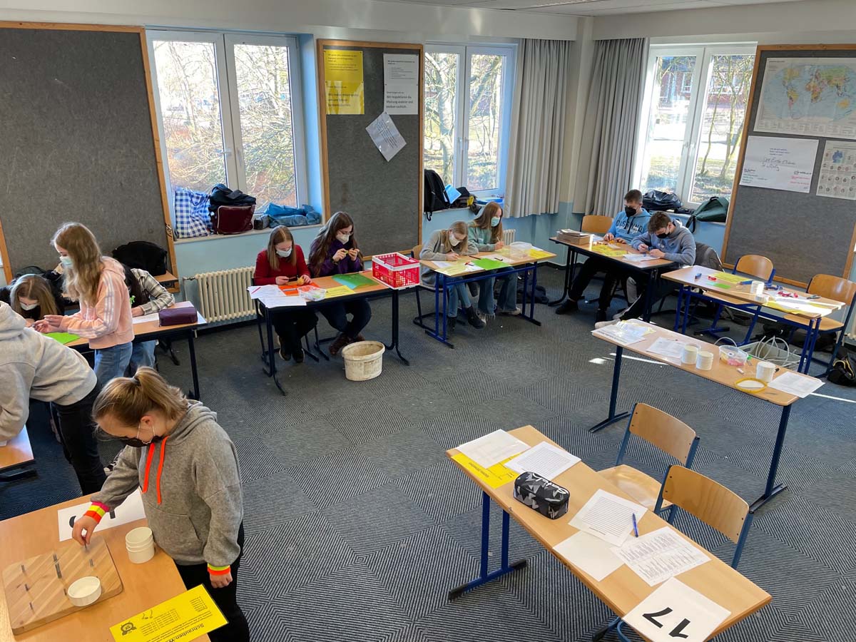 Die Schüler*innen des Gymnasialzweiges beschäftigten sich in der Schule mit einem Praxisparcours, in dem sie praktische Übungen zu den unterschiedlichsten handwerklichen Kompetenzbereichen durchlaufen konnten. Dazu gehörten z.B. Stationen zur Auge-Hand-Koordination, zum räumlichen Sehen, zur Feinmotorik oder kreativem Geschick. Darüber hinaus war es ihnen möglich, Einblicke in die Fächer zu erhalten, die ansonsten leider nicht auf ihrem Stundenplan stehen. Kochen, Ernährungslehre oder der Umgang mit dem 3D-Drucker bleibt sonst den Mädchen und Jungen vorbehalten, die in den Jahrgängen 7 – 10 einen Wahlpflichtkurs Hauswirtschaft oder Technik belegen. Abgerundet wurde dieses Angebot von Herrn Roskosch von der Bundesagentur für Arbeit, der den Schüler*innen die ersten Schritte auf dem Weg zum passenden Beruf aufzeigte. Im Mittelpunkt standen dabei Eignungs- und Interessentest sowie erste Hinweise zur Berufs- und Studienorientierung.