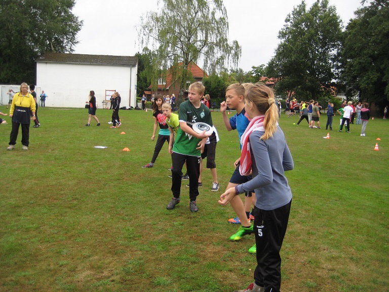Am 03.09.2013 fand unser diesjähriges Sportfest statt. Wie immer ging es auch diesmal nicht um Leichtathletik oder die Bundesjugendspiele, sondern um unterschiedlichsten Sport- und Mannschaftsspiele. In Jahrgängen eingeteilt spielten die Jugendlichen Völkerball, Schwimmspiele, Frisbee, Beachvolleyball und Basketball. Hier einige Eindrücke:
