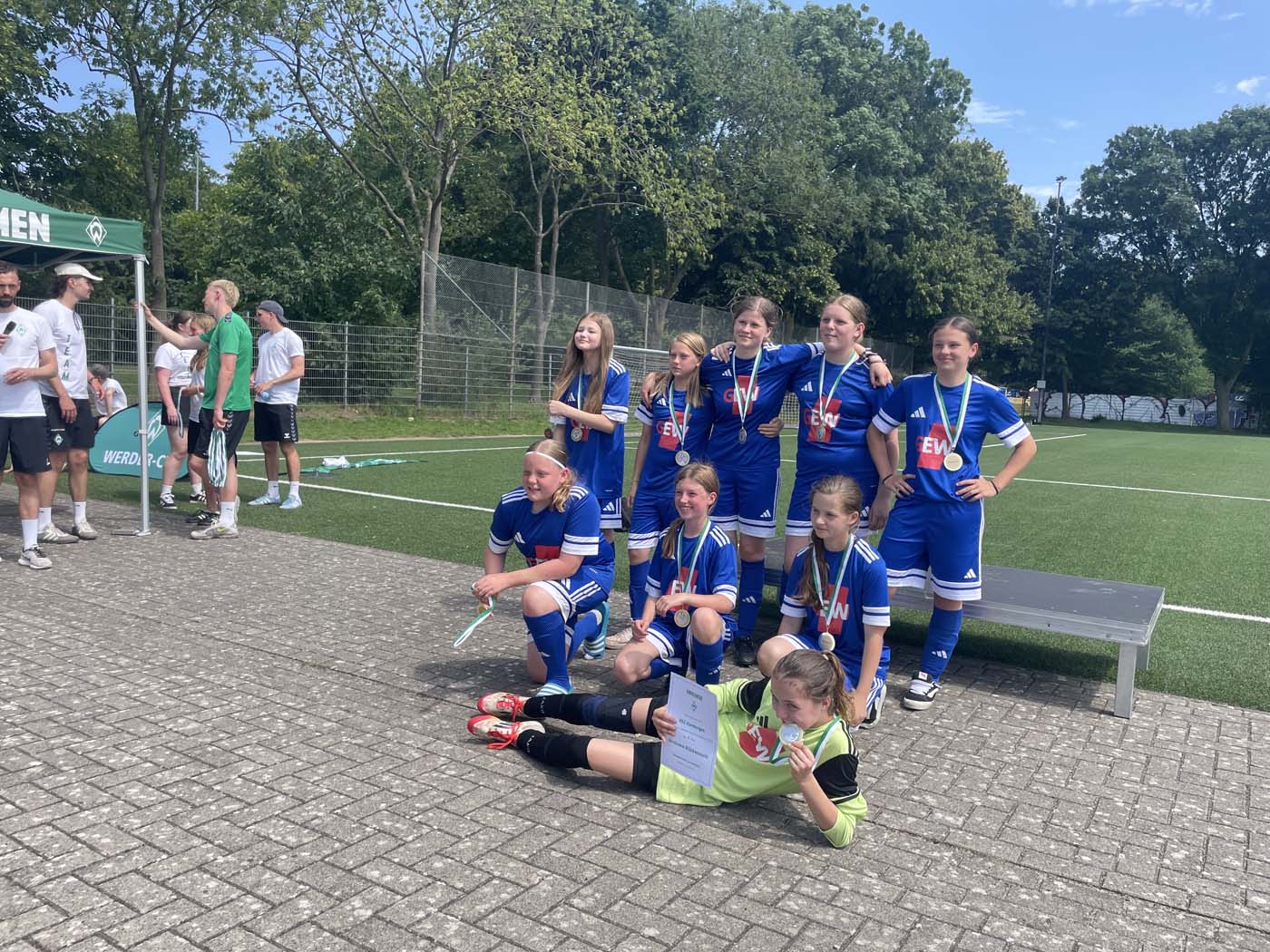 Unsere U14-Mädchenmannschaft nahm letzte Woche am Werder Cup in Bremen teil – einem überregional hervorragend besetztem Turnier mit insgesamt 19 Teams. Unsere Mannschaft zeigte dabei eine beeindruckende Leistung und belegte am Ende einen starken 5. Platz.