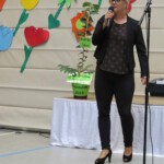Zwischendurch präsentierte Frau Brede den vom NABU gestifteten Baum des Jahres, in diesem Jahr die Flatterulme, als Geschenk an die neuen BaumpatInnen, die Kinder des 5. Jahrgangs. Stellvertretend nahm Frau Teichert als Jahrgangsleiterin den Baum in Empfang.