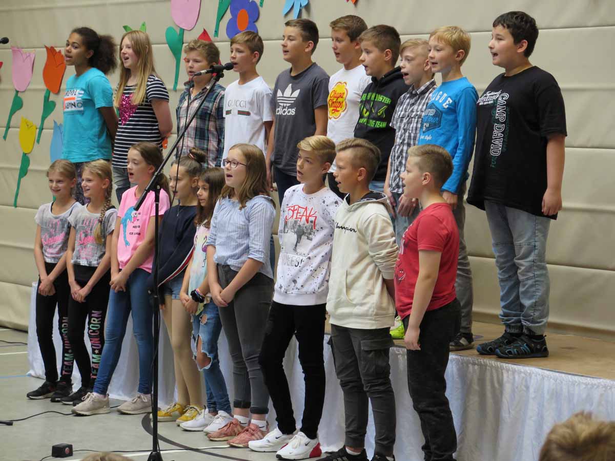 Die musikalische Begleitung kam von den Klassen 6.1 und 7.1, die unter der Leitung von Frau Ahlgrim aktuelle Lieder erklingen ließen. Vielen Dank dafür!