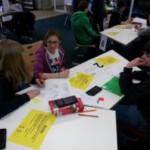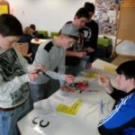 Die Schülerfirma, Abteilung Schulservice, hat für den 8. Jahrgang den Praxisparcours aufgebaut. An insgesamt 17 Stationen können die Jugendlichen ihre Fähigkeiten und Fertigkeiten ausprobieren. Das Angebot ist vielfältig, z. B. Schrauben und Muttern unter Zeitvorgabe montieren, einen Tisch decken oder einen Stromkreis aufbauen.